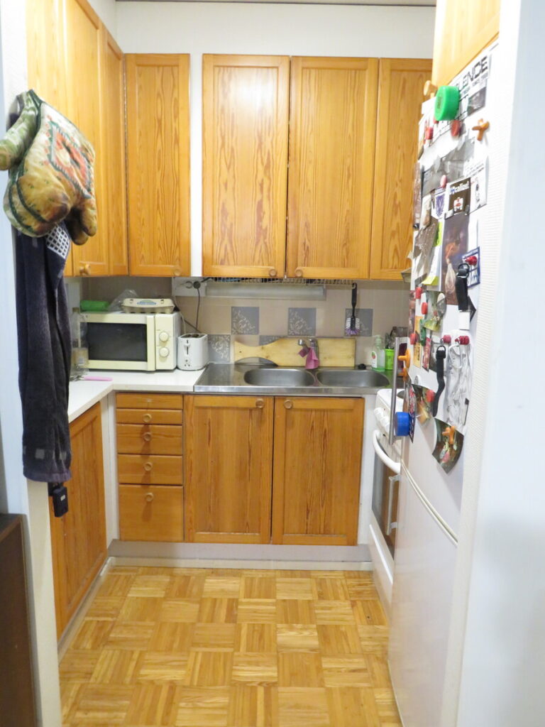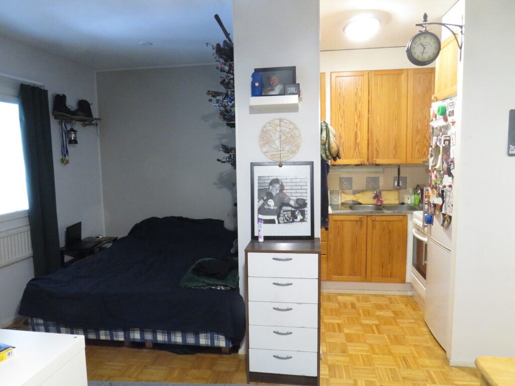 | Keittiö | Varustus: jääkaappi/pakastin, liesikupu, kiinteät valaisimet, Liesi: sähköliesi, Lattia: parketti |