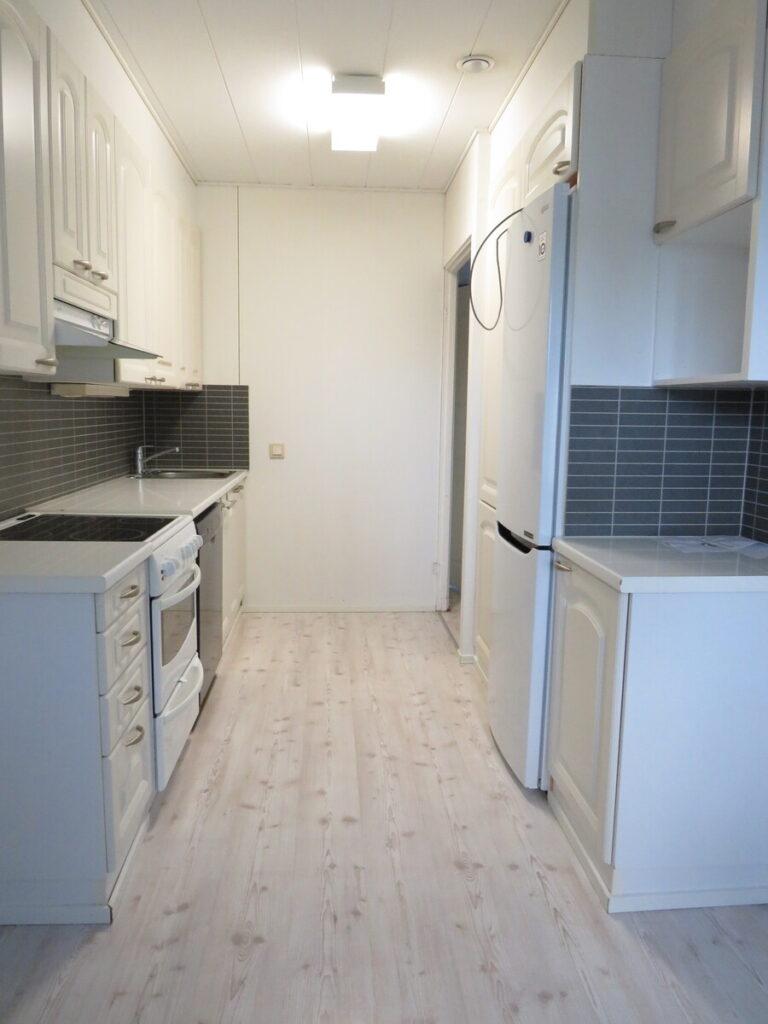 | Keittiö | Varustus: jääkaappi/pakastin, astianpesukone, kiinteät valaisimet, liesituuletin / hormi, Liesi: keraaminen, Lattia: laminaatti |