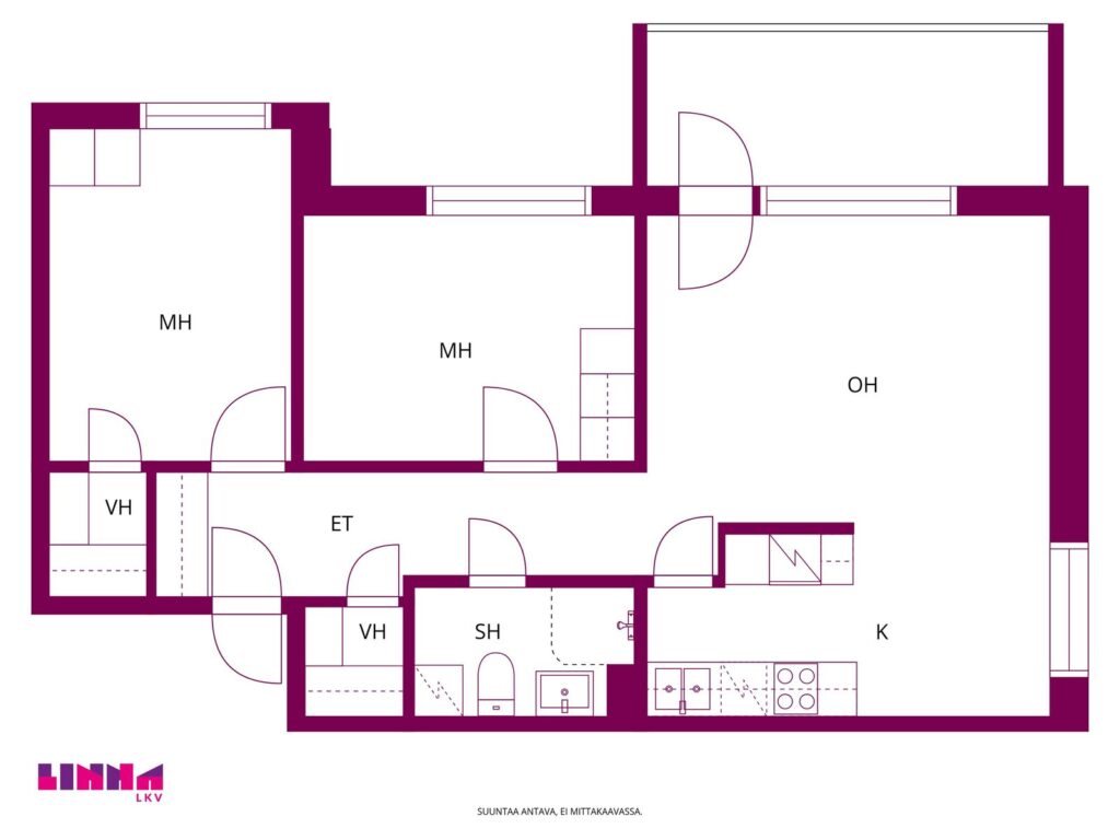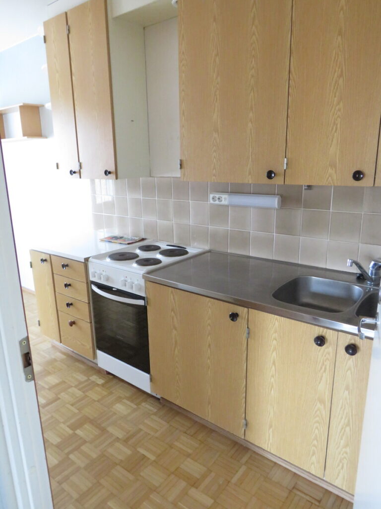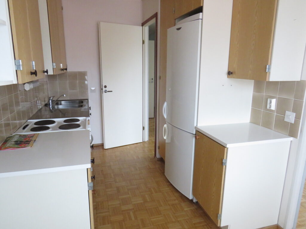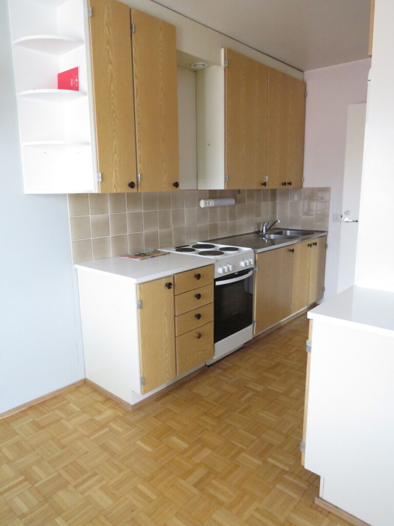 Keittiö | Varustus: jääkaappi/pakastin, kiinteät valaisimet, Liesi: sähköliesi, Lattia: parketti |