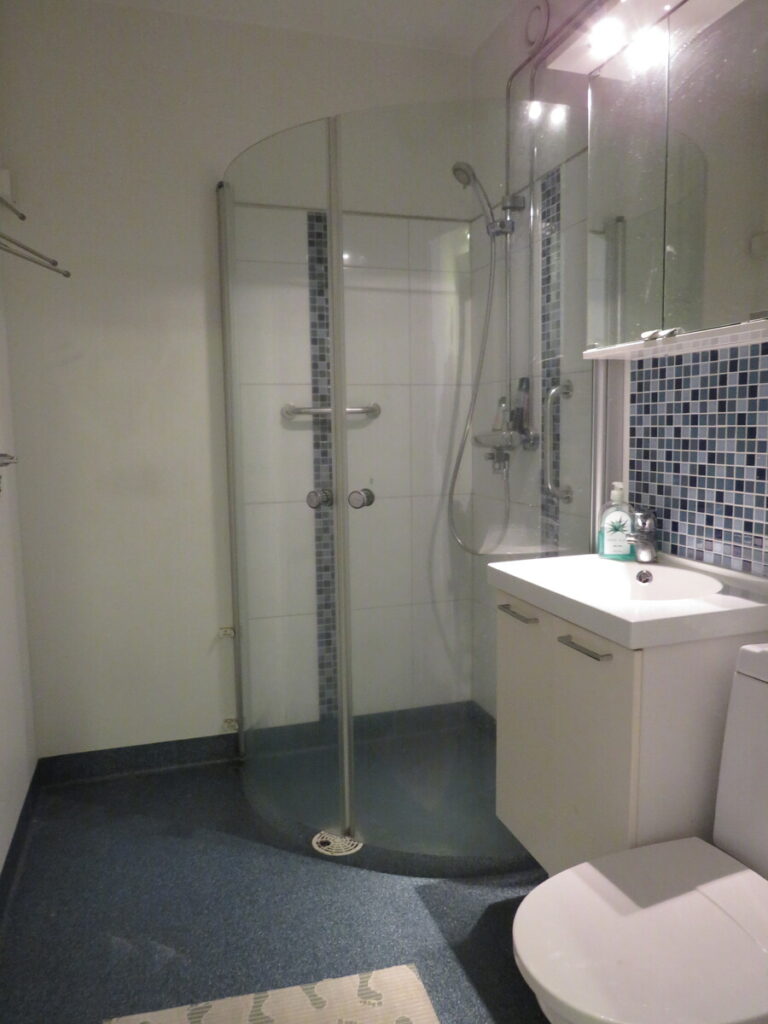Pesutilat | Varustus: suihkuseinä, pesukoneliitäntä, wc-istuin, suihku, peili, kiinteät valaisimet, |